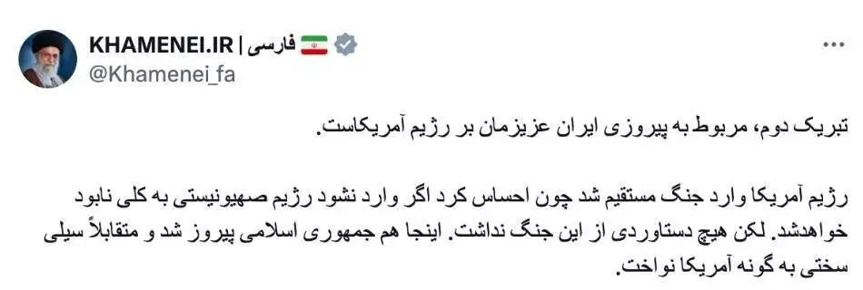 哈梅內(nèi)伊就以伊沖突發(fā)文:伊朗取得勝利并給了美國一記耳光